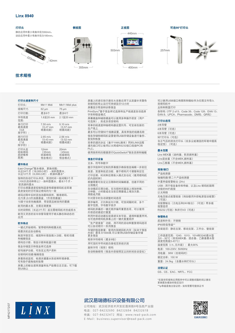 1. 噴碼多達(dá)六行,包括二維條形碼
